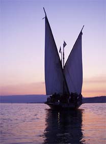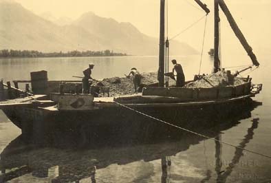 La Vaudoise fut construite en 1932 pour son propriétaire Monsieur Eloi Giroud de Villeneuve. C'est la dernière barque de ce type qui fut construite sur le Léman pour le transport de marchandises. Le chantier de la Vaudoise se trouvait à Bret-Locum (côtes françaises du Lac Léman). Elle est munie de son gréement classique des barques dites "de Meillerie", soit 2 voiles latines et un foc. (Les barques du 18ème siècle ne possédaient pas de foc.) |