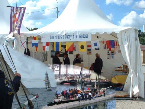 Pour participer à cette importante Fête des vieux grééments, dont la Suisse était l'un des pays invités, il fallait qu'un stand de vente des objets promotionnels de la Confrérie des Pirates d'Ouchy soit tenu, animé. La sécurité du ponton attribué à "La Vaudoise", illustre vedette de la Fête, devait aussi être assurée. |